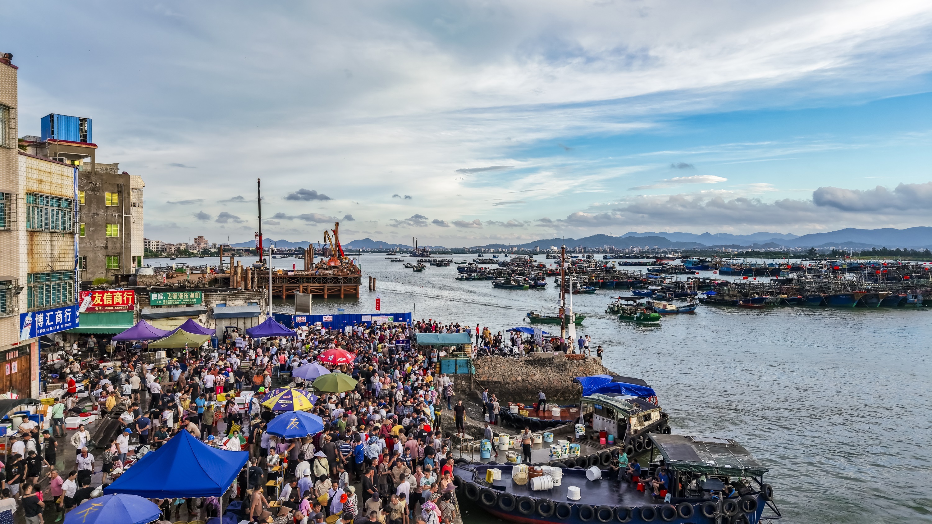 天还未亮,茂名博贺码头已挤满“寻鲜”的人群。 (吴秒衡 摄)