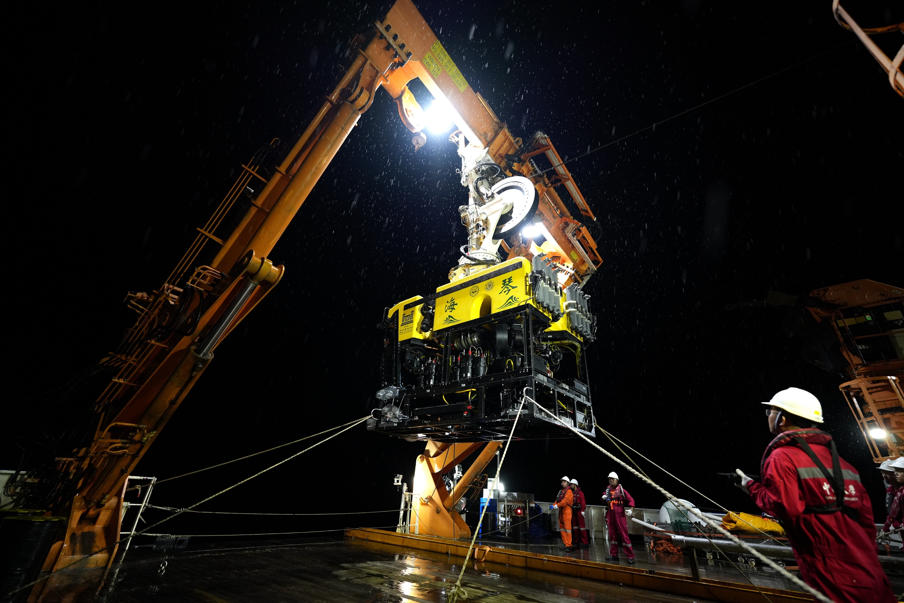 我国自主研制的6000米级深海无人遥控潜水器“海琴”号在南海成功海试。(新华社 图)