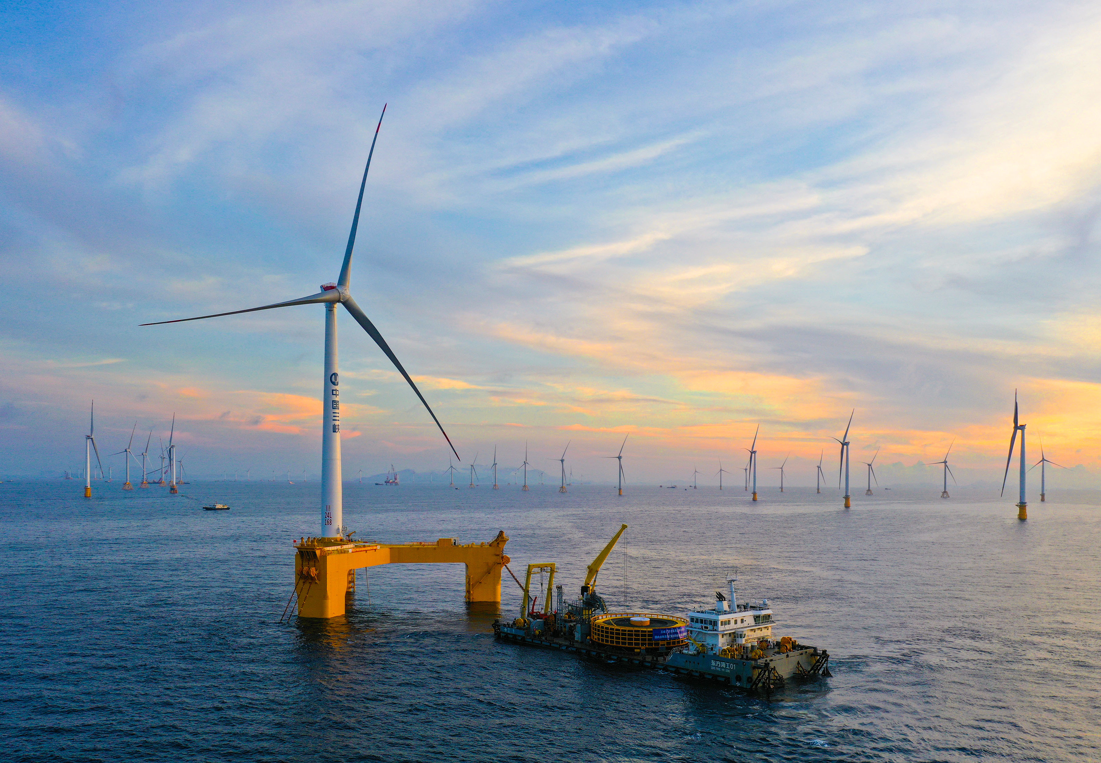 全球首台漂浮式海上风电机组“引领号”诞生,离不开金融支持。(视觉中国供图)